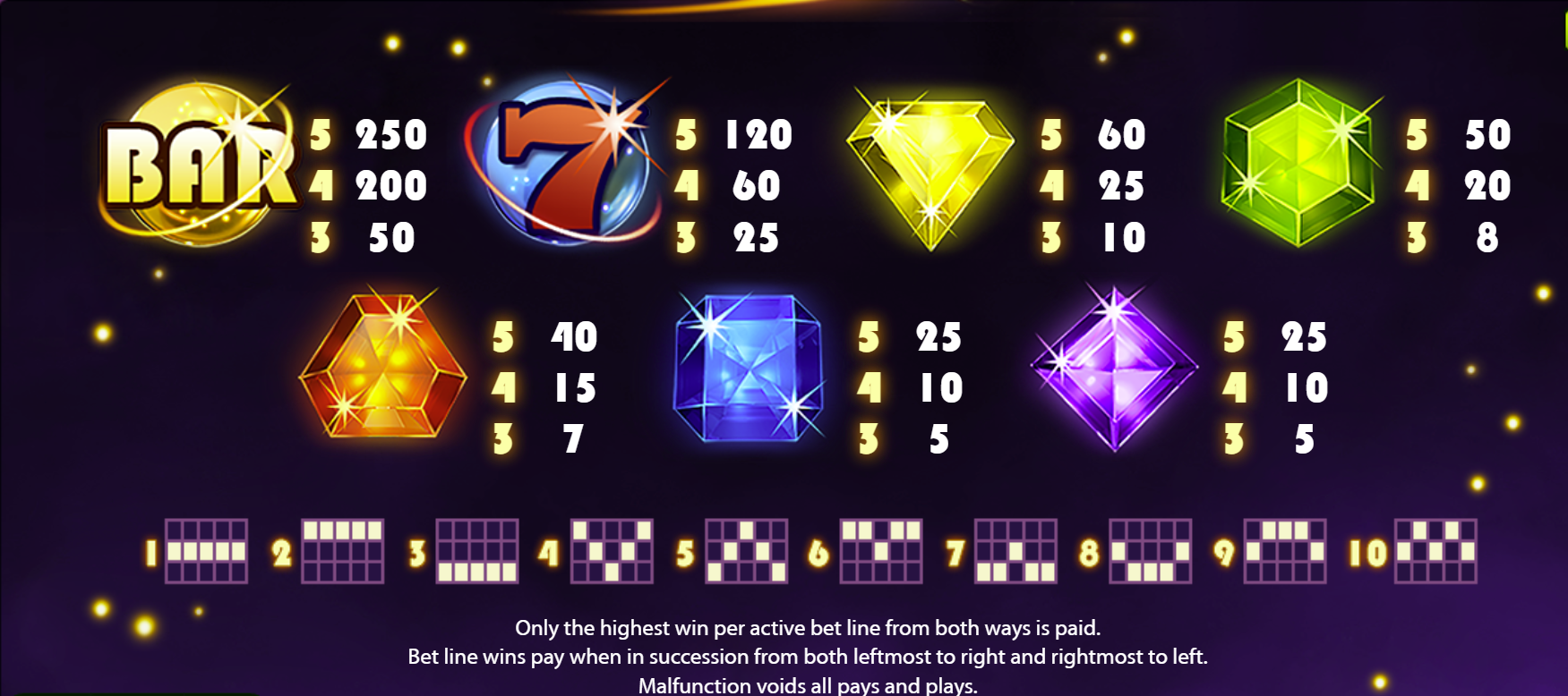 | Theme | Gems / Cosmic / Arcade |